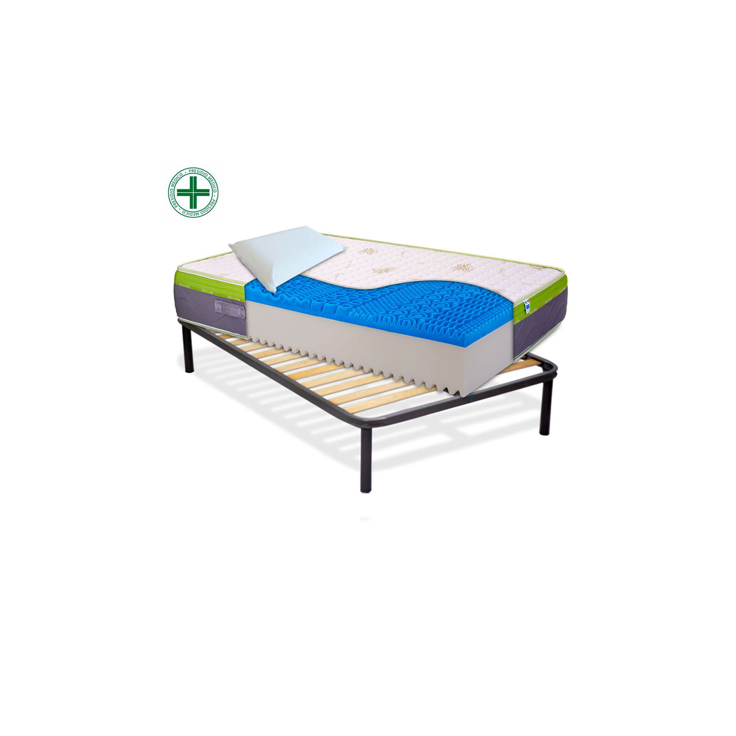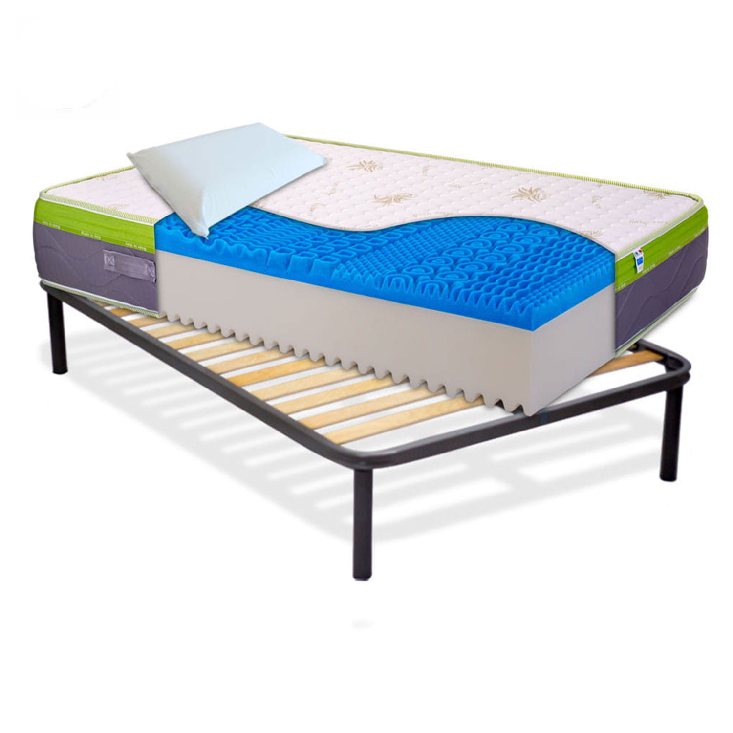 Materasso in memory gel, Alto 30cm, Ortopedico con rete a doghe + cuscini - KIT TOP30