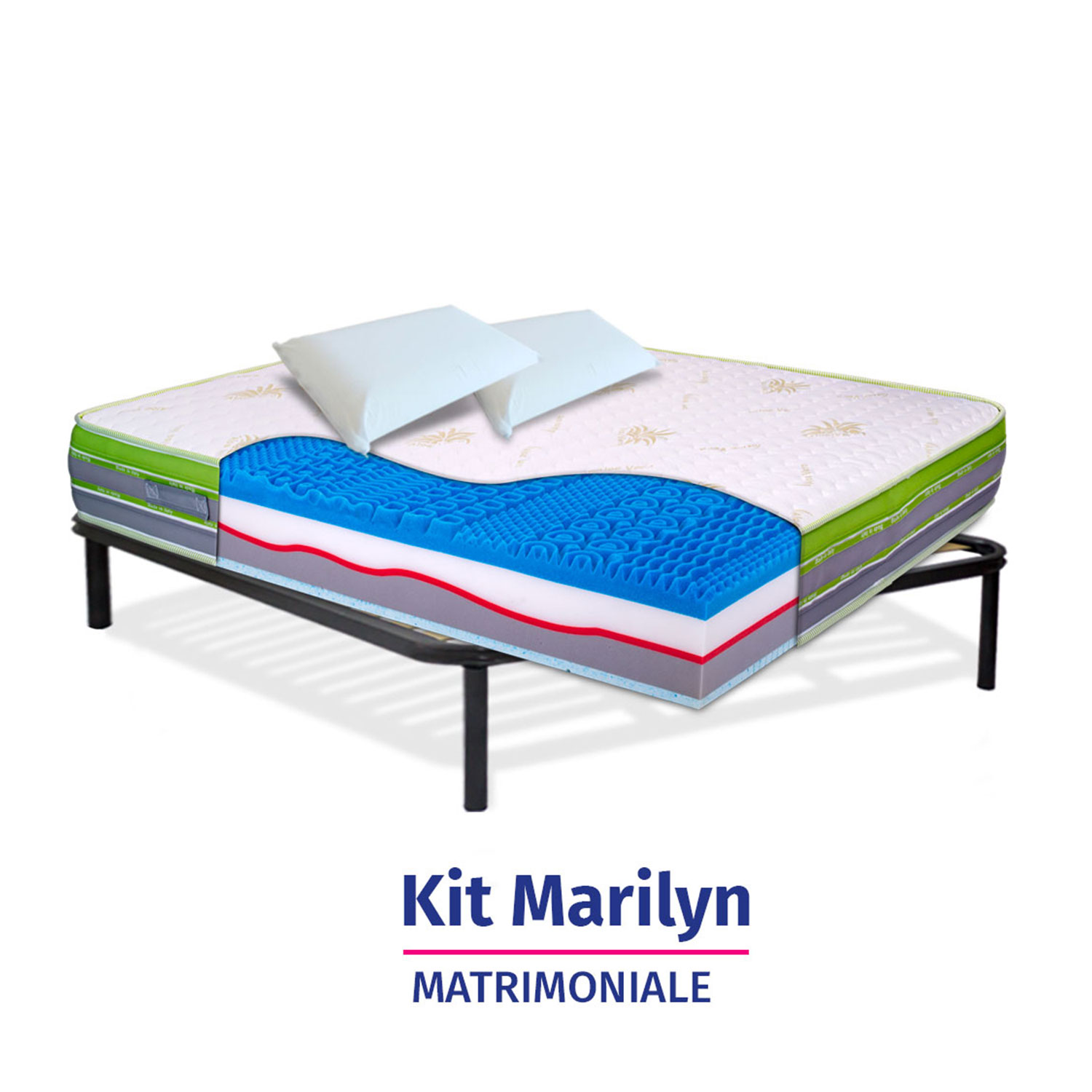 KIT MARILYN – Materasso in Memory e Lattice + rete a doghe + cuscini